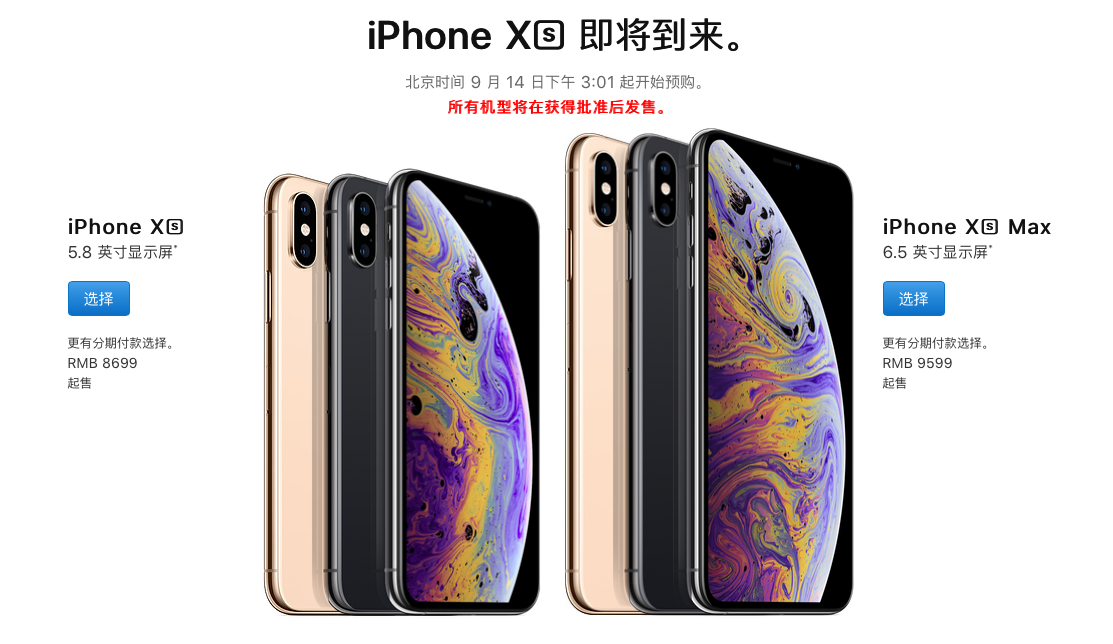 iPhone Xs Max:1099美元起、国行9599元起