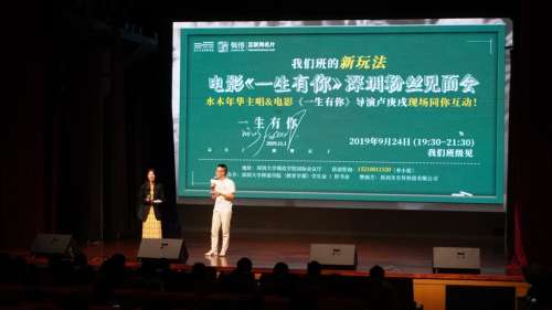 电影预告让在场的不少同学都红了眼眶,随后我们的卢导也登上了舞台,与大家分享他的青春故事。《一生有你》本是为了追求心爱的女孩,体验着青春的伤痛与疯狂,这首歌才出现在了大众视野里。更多的故事则成为素材拍进了电影里,可以说它同样是承载着卢导青春回忆的一部作品。