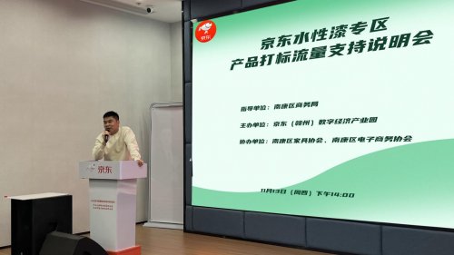 为贯彻京东平台与南康区政府推动家具产业“油改水”绿色转型合作,助力“南康水性漆家具”线上规模化、高端化发展,“京东水性漆专区产品打标流量支持说明会”于13日下午在京东(赣州)数字经济产业园举行。此次活动由南康区商务局指导,京东(赣州)数字经济产业园主办,南康区家具协会、南康区电子商务协会协办。据悉,说明会面向南康核心家具企业,解读京东为水性漆产品设的专属标识认证体系与审核流程,发布专区流量扶持政策。这标志着双方合作进入深化落地阶段,将以规则指引和资源倾斜,助企业抢占绿色消费市场新机遇。